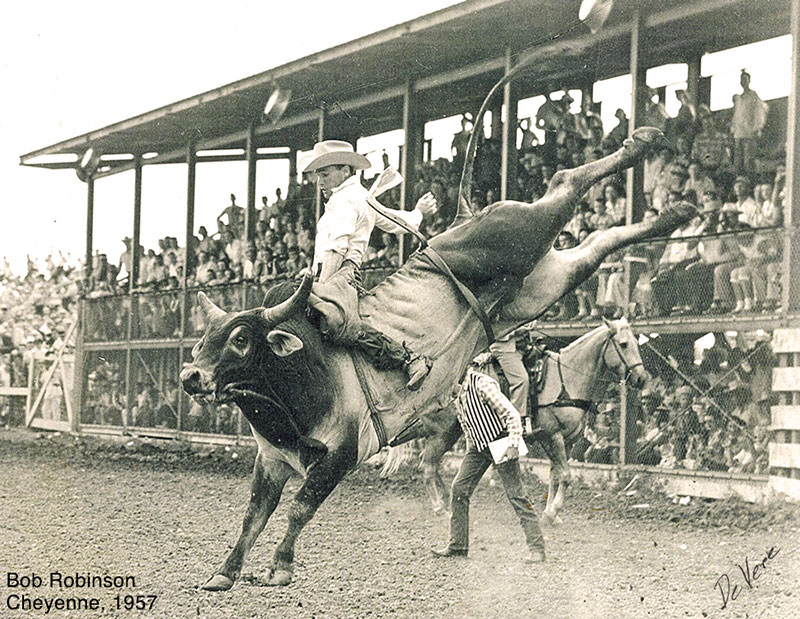 Bob’s first big competitive win came in 1953, when he won the All Around Championship at the Edmonton Spring Rodeo. By 1955 he was competing full time as a professional, and the following year was a banner year for him; he won the Saddle Bronc Riding at the Calgary Stampede and the Canadian Championship in the Saddle Bronc Riding. In 1962 Bob qualified for his first National Finals Rodeo in Oklahoma City - where he won the average in the bull riding. He was back again in 1964 after missing the cut in ’63 by just $16.