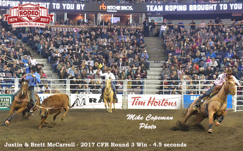 The team roping brothers, header Justin McCarroll and heeler Brett McCarroll, won the second of back to back Canadian titles.
