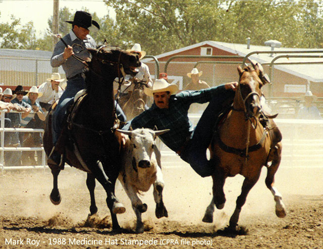 Fir Mountain, Saskatchewan native Mark Roy followed up his first Canadian Steer Wrestling win (1991) by capturing a second Canadian title, the NFR Steer Wrestling average and the World Steer Wrestling Championship. Mark was the first Canadian to win the World in the steer wrestling event.