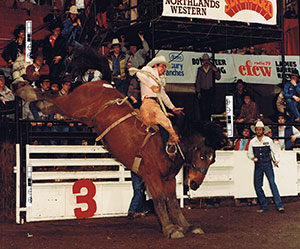 An eighteen year-old saddle bronc rider from Pierceland, Saskatchewan burst onto the Canadian professional rodeo scene, winning Canadian Rookie of the Year honours and the Canadian Saddle Bronc Riding title that same year at the first CFR.