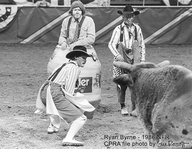 During a brilliant career that spanned a decade and a half, Ryan was the bullfighter at fourteen consecutive Canadian Finals Rodeos and in 1987 and again in 1993 was selected as alternate bullfighter at the NFR. In addition to working the finals on both sides of the 49th parallel, Ryan fought bulls at many of the best rodeos in Canada including Regina, Cloverdale, Ponoka and The Calgary Stampede. He was also the bullfighter for the prestigious Olympic Rodeo in 1988.