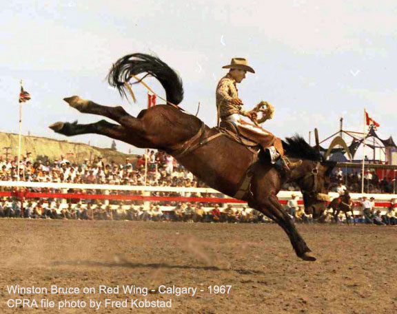 Stettler, Alberta-born cowboy, Winston Bruce, son of former stock contractor and old time saddle bronc rider, Laurence Bruce, rose to the top of the rodeo world as he won the World Saddle Bronc Riding Championship. This win came on the heels of his Canadian titles (1957 and '58) and, prior to that, a pair of novice championships in 1954 and ’55.