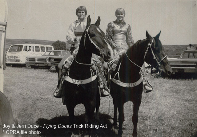 But that was just one facet of this multi-talented cowgirl’s life in rodeo. She and sister Joy were the famed “Flying Duces” a trick riding act that performed at the 1967 World’s Fair in Montreal, at State Fair rodeos in Louisville, Kentucky, Indianapolis, Indiana, Rochester, Minnesota and Fort Worth, Texas, along with performances at the Cow Palace in San Francisco, Madison Square Gardens in New York City and foreign stops in England, Scotland, Bermuda and Japan.