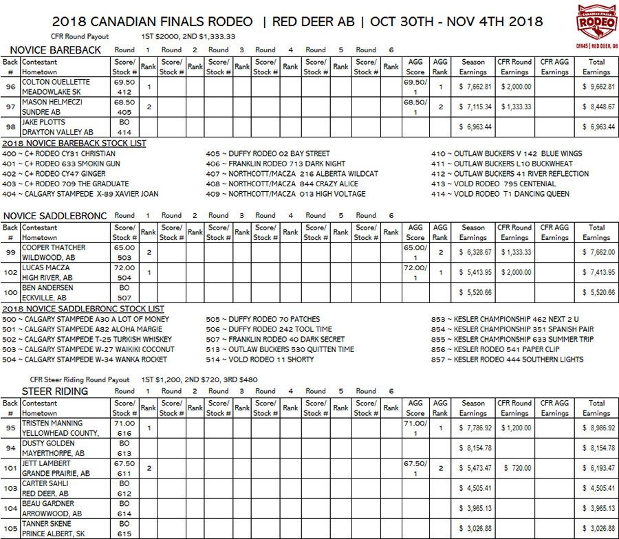 | CANADIAN FINALS RODEO Round by Round Results |