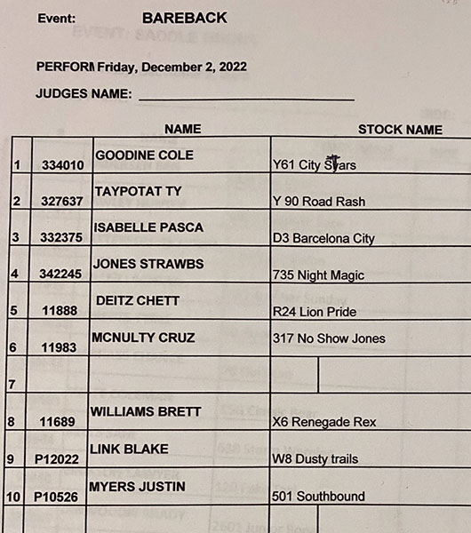 | EVENT :SADDLE BRONC |