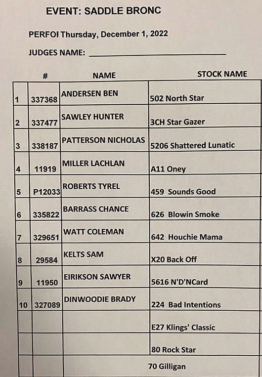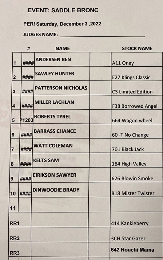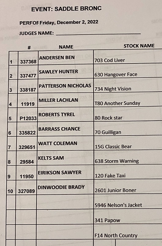 | EVENT :SADDLE BRONC |
